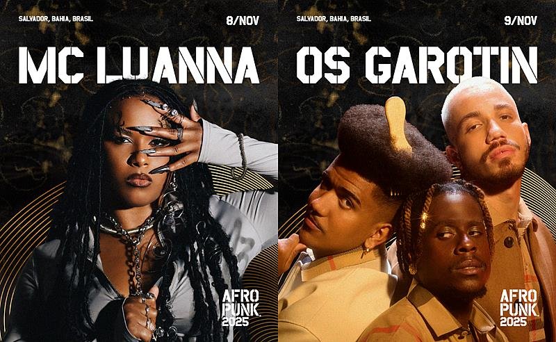 Como prometido, o AFROPUNK Brasil segue expandindo seu line-up com a força, a diversidade e a inovação que marcam sua história. Nos dias 08 e 09 de novembro de 2025, o Parque de Exposições de Salvador volta a ser ponto de encontro de quem vive e celebra a bússola da música negra, com um line-up calibrado, que acaba de receber dois novos integrantes: MC Luanna, um dos nomes mais promissores da nova geração – recentemente indicada ao BET Awards –, com seu funk afiado; e a mistura do groove e o swing com uma estética nostálgica que só Os Garotin consegue entregar. Na programação também estão confirmados Jorja Smith, BK’, Péricles, Liniker, BaianaSystem, ÀTTØØXXÁ, Budah, Núbia convida Muzenza – e os DJs Boneka e Umiranda. Os ingressos estão disponíveis aqui.